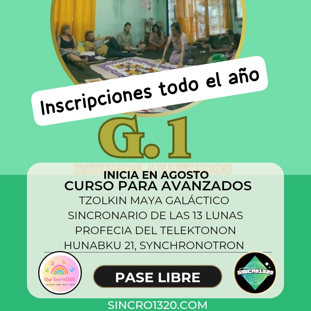 El PROPÓSITO del G.1 es avanzar en el conocimiento, el estudio y la investigación sobre todos los temas de la Ley del Tiempo (sincronario de las 13 lunas, Tzolkin del Encantamiento del Sueño, Profecía del Telektonon, Hunab Ku 21, Synchronotron).